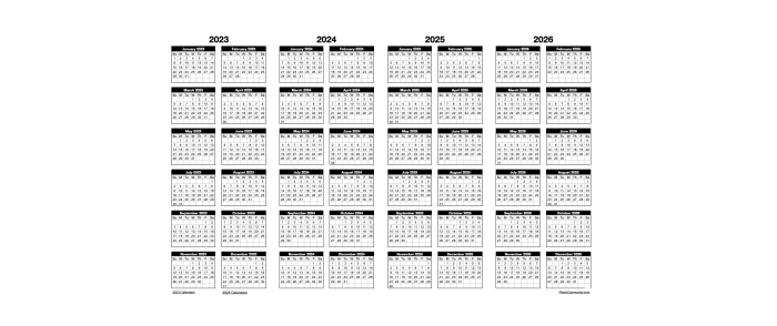 This Portrait 2023-2026 Four Year Calendar Numbers Template is a great way to view 4 years at a glance....